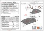 Стальная защита картера изготавливается из холоднокатанной стали марки Ст3СП ГОСТ, окрашена европейской порошковой краской, цвет RAL9005. Конструкция защиты картера предусматривает специальные оцинкованные крепежные элементы для установки в штатные места автомобиля. Доработанная геометрия ребер жесткости дополняет пассивную безопасность автомобиля. Наличие технологических отверстий для слива масла и нормальной циркуляции воздуха в моторном отсеке