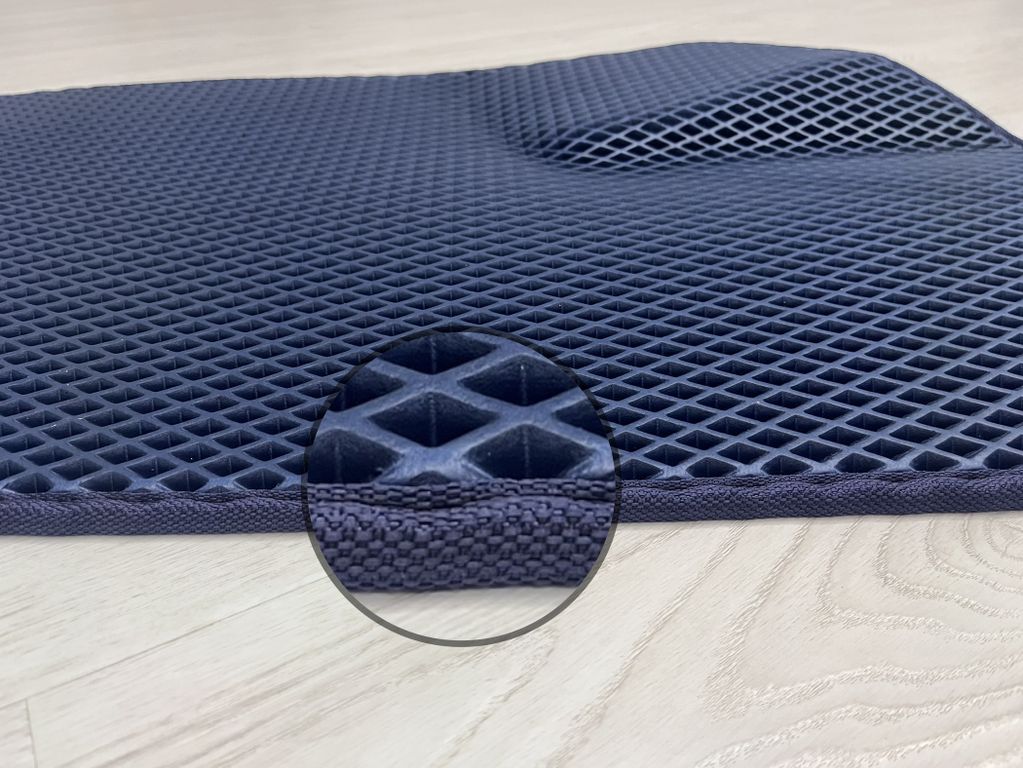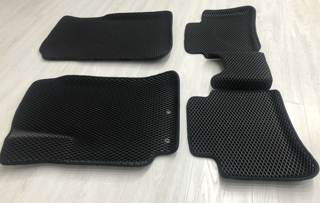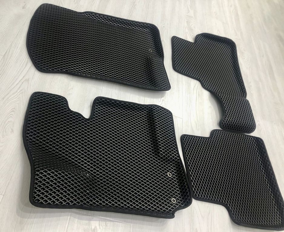 Материал Eva российского качества( не Китай), лекало закрывают пол от края и до края. Водительский коврик отформован под площадку для левой ноги. Все коврики фиксируются липучками
