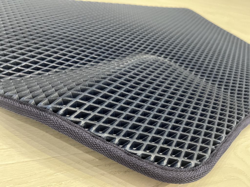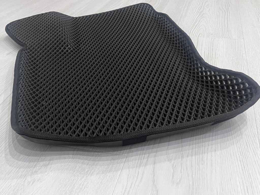 Материал Eva российского качества( не Китай), лекало закрывают пол от края и до края. Водительский коврик отформован под площадку для левой ноги. Все коврики фиксируются липучками
