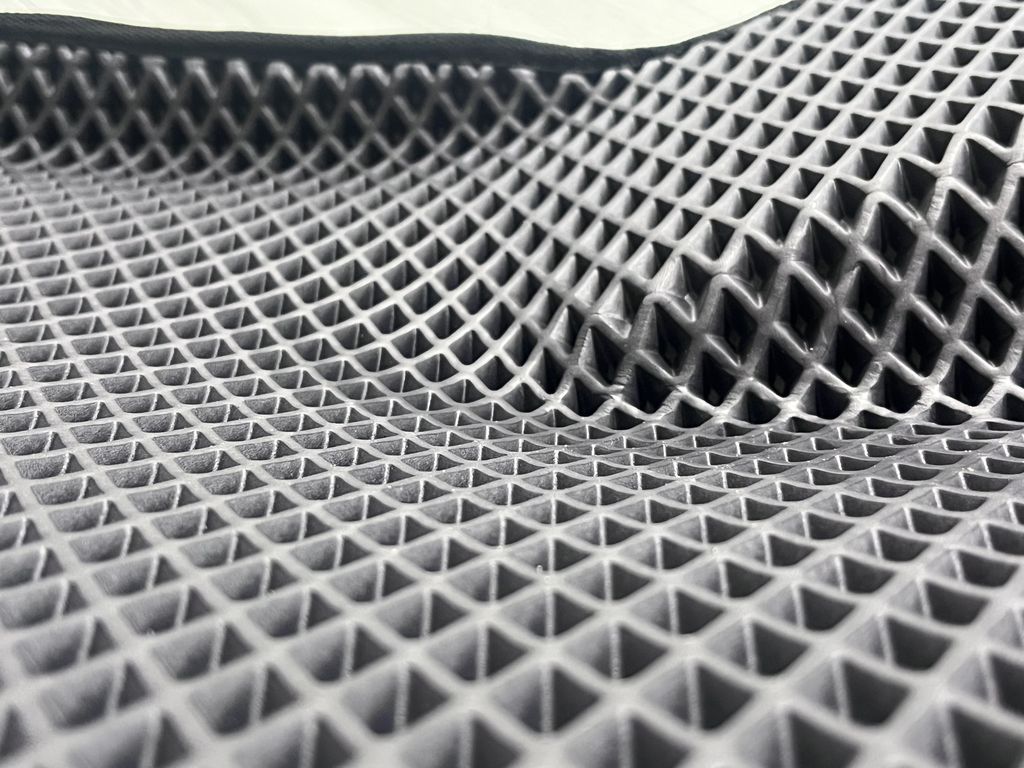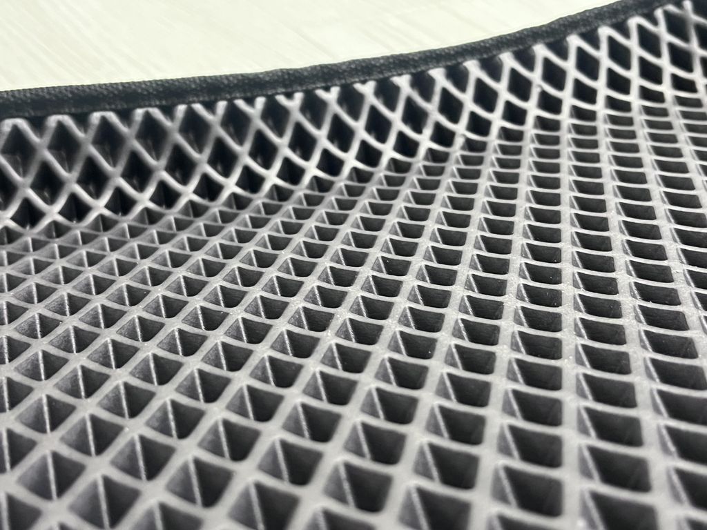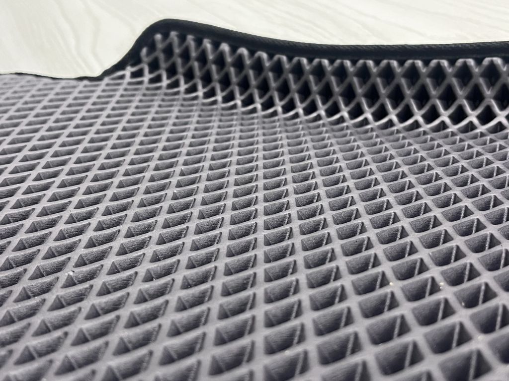 Материал Eva российского качества( не Китай), лекало закрывают пол от края и до края. Водительский коврик отформован под площадку для левой ноги. Все коврики фиксируются липучками